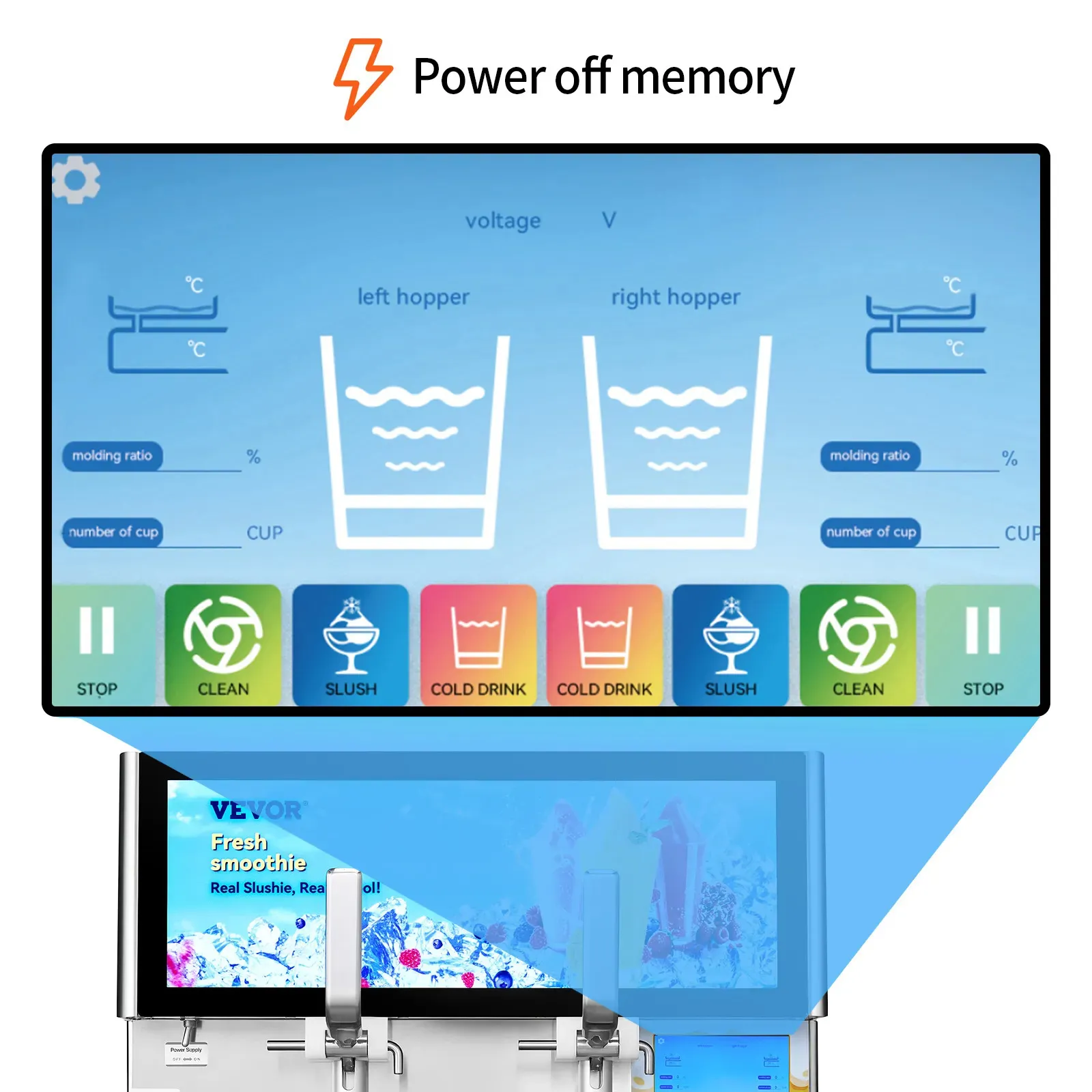 Powered by a 1155W high-efficiency compressor, the advanced refrigeration and blending system delivers rapid cooling while remaining energy-efficient and quiet during operation. Engineered for summer beverage demands, the VEVOR Double Bowl Slushie Machine provides reliable performance, professional build quality, and consistent frozen drink results for any commercial setting.